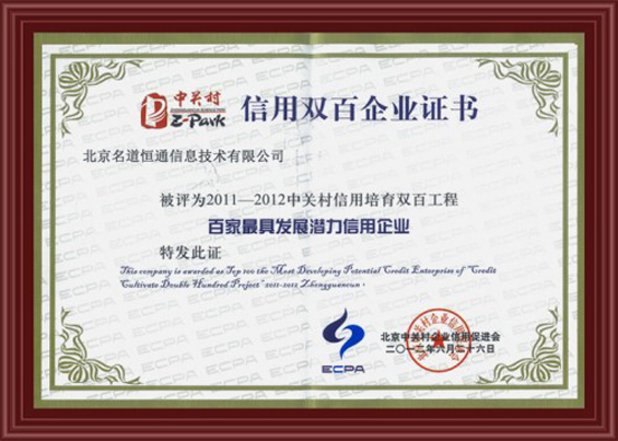 2010年12月16日,在京仪大酒店二层大宴会厅举办了“信用中关村”系列活动暨中关村企业信用培育双百工程启动仪式。我公司姜总、综合部赵总、财务经理于会计参加了会议。会议的主题是:信用融资、创新发展。会议还为“信用双百”企业颁发了证书和奖牌。“中关村信...