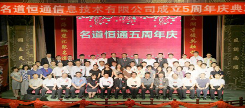 2012年5月25日晚,北京名道恒通信息技术有限公司在北京三里屯梦回天桥文化广场成功举办了主题为“同舟共济、再铸辉煌”的成立五周年庆典联欢会。中石化信息部副主任齐学忠、石化盈科总裁潘欣荣等近60位特邀嘉宾及公司总经理姜洪安、副总经理张智伟和全体员工出...